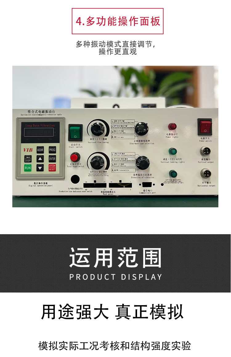 精准工频振动,性能稳定;负载能力强,适配范围广;操作便捷,智能化程度高;结构坚固,运行可靠;减震降噪,环境友好;安全防护全面;定制化能力强