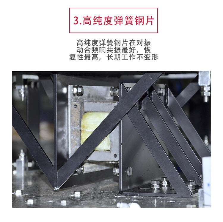 振动主机:采用电磁激励结构,铁芯与线圈配合精准,振动稳定;机身采用优质钢板焊接而成,经过时效处理,刚性强、变形小,确保振动精度。